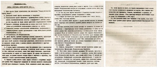 在国家博物馆“复兴之路”基本陈列的展厅里,对应着《中国共产党第一个纲领》中文说明牌的位置,摆放的是三张有些泛黄的打印着俄文的纸。许多观众忍不住问,既然是我党重要文件,为什么用的是俄文呢?事情要从中共一大最后一天的会议说起。